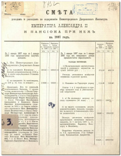 Нижегородский дворянский институт им. императора Александра II. Смета доходам и расходам по содержанию Нижегородского дворянского института императора Александра II и пансиона при нем.... — Нижний Новгород : Типо-литогр. И. М. Машистова, 1894- г. ... на 1897 год. — 1897 г. — 7 с.